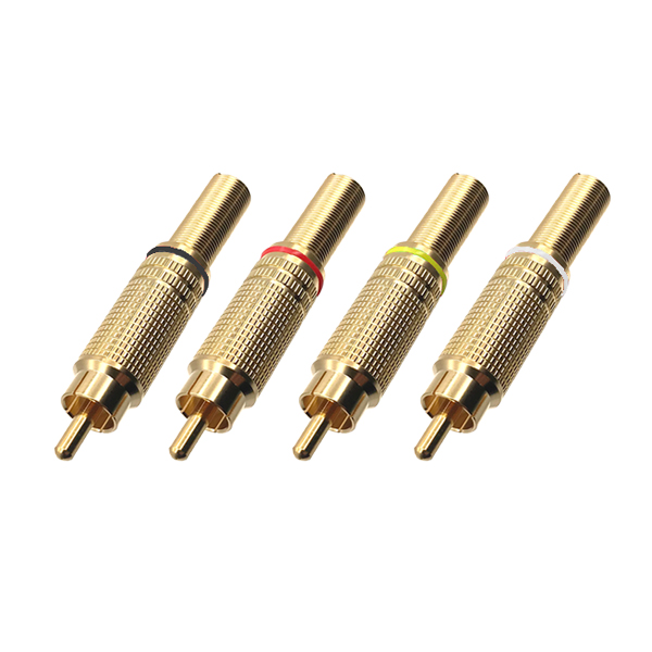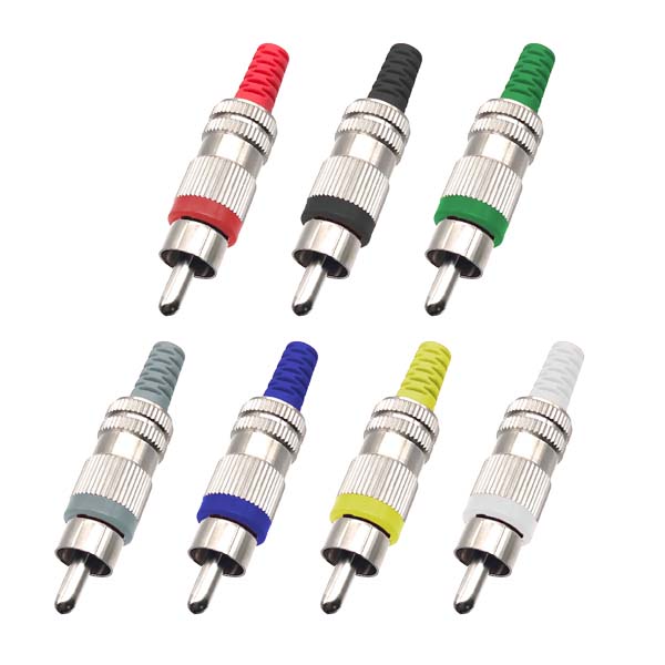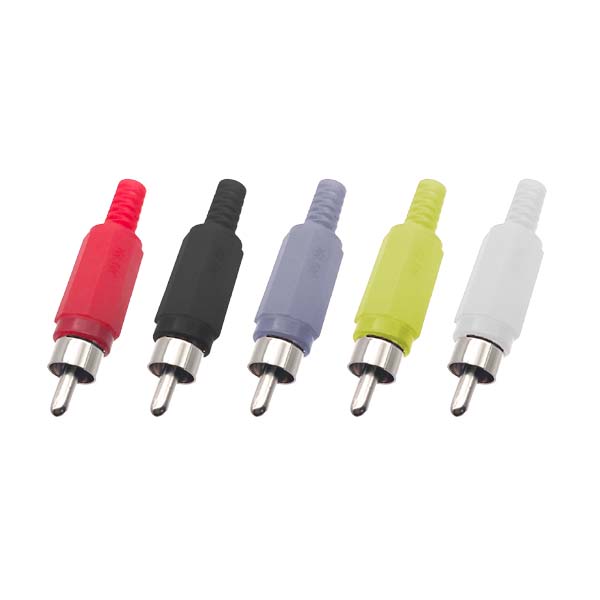 「ピンプラグ」とも呼ばれ、一般的に音声の右チャンネル用に赤、左チャンネル用に白、映像信号用に黄色と色分けされています。