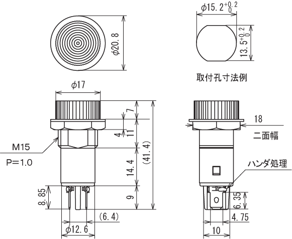 | 端子金具 | はんだ付け兼用187タブ端子 (t0.5) |