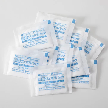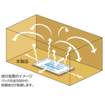 梱包体の内部に投入するだけで、鉄、非鉄に関係なく全ての金属製品を防錆することが出来ます。