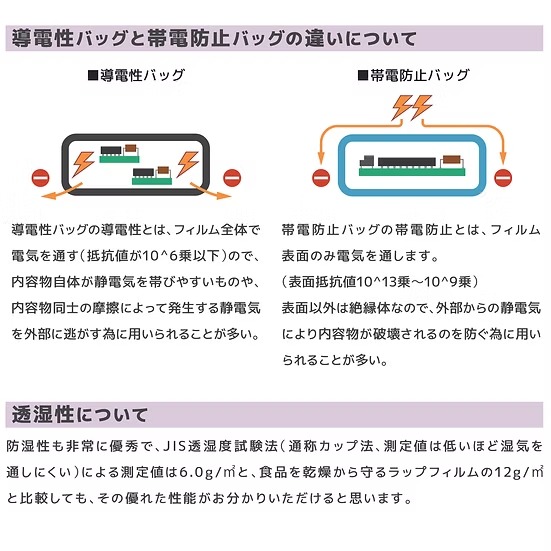 安定した表面抵抗値を長時間持続する帯電防止バッグ。