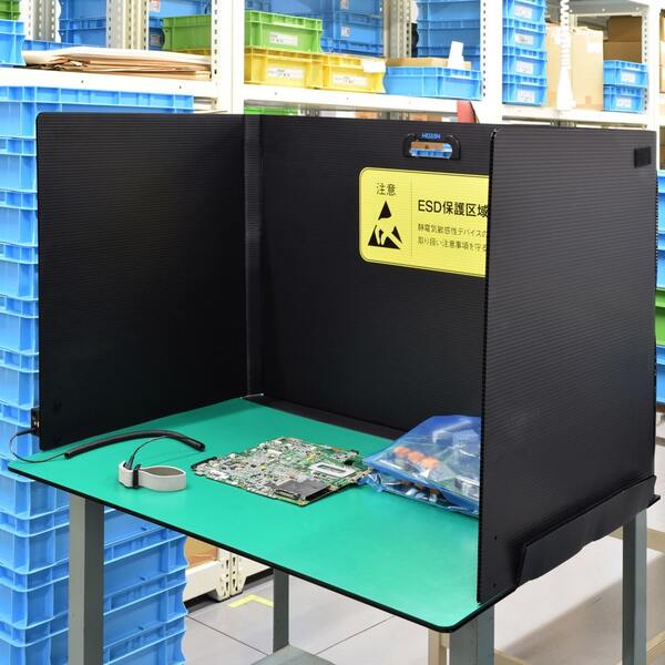 簡単に片づけられる、静電界の遮蔽機能を兼ね備えた卓上ブース