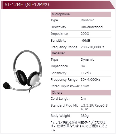 ST-12MF(ST-12M*2) | アシダ音響 スタジオモニター向け ステレオヘッドセット 日本製
