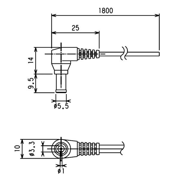 DC10.5V~13.5V 2A L型 コード長 L=1,800mm のDCプラグ付