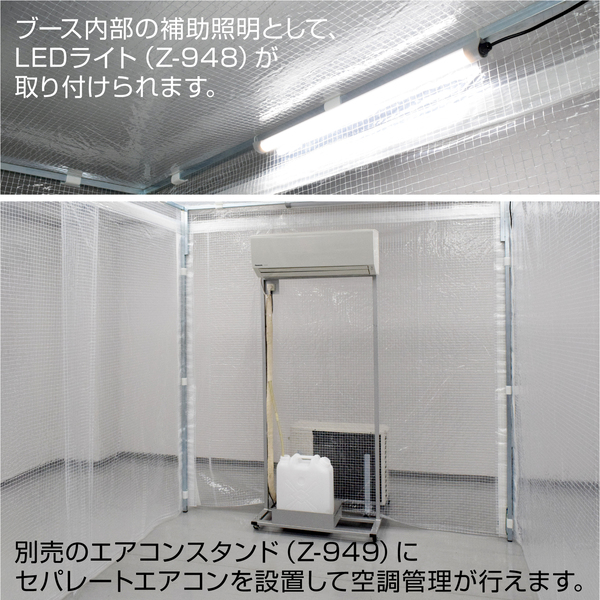 用途が異なるブースも連結できるため、作業室と準備室の設定や遮光室も増設できます。