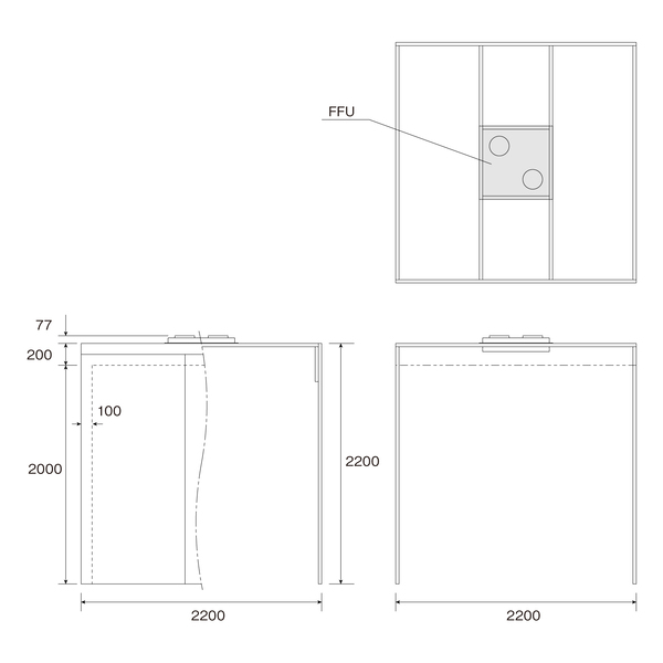 本体の立面(4面)において、ブース同士の連結が容易に行え、セル単位でクリーン環境の拡張、レイアウト変更が可能です。
