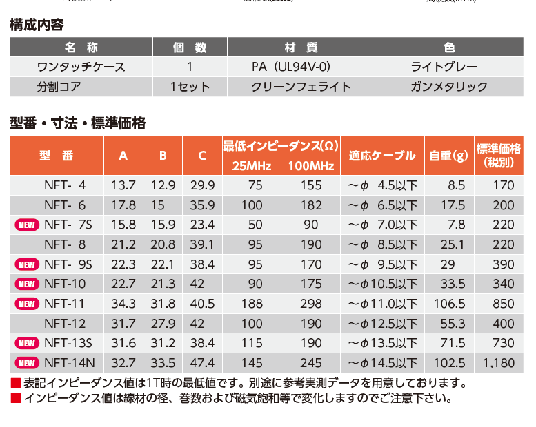 NFT-7S | タカチ電機工業 ワンタッチ分割スリーブコア NFTシリーズ