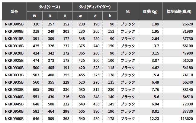 NKKD940B |タカチ電機工業 ディバイダ―付防水キャリングケース 鍵付き NKKDシリーズ