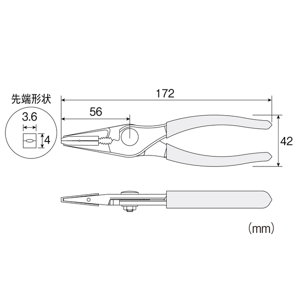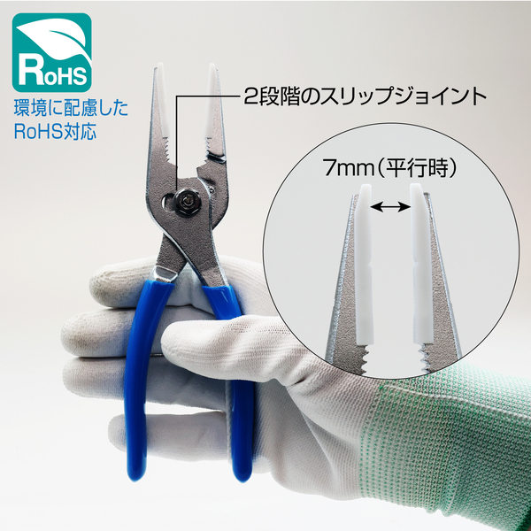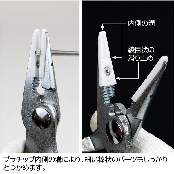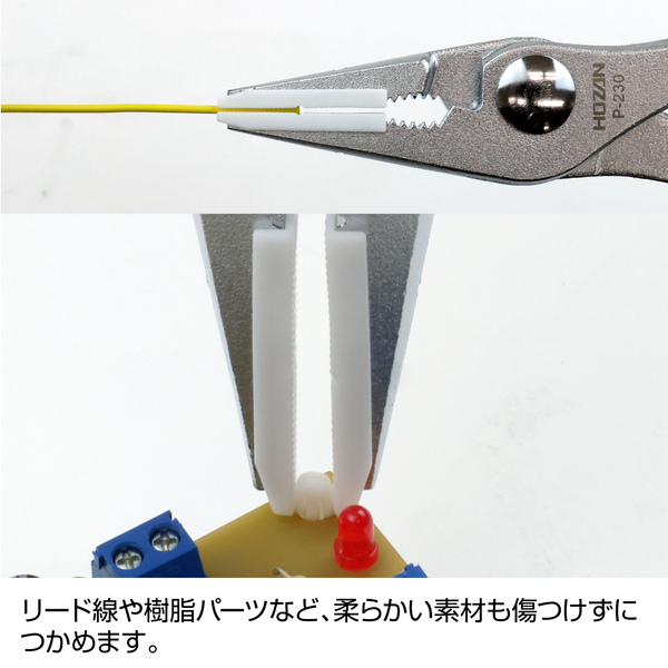 対象物に傷をつけにくいプラチップ付先細プライヤー