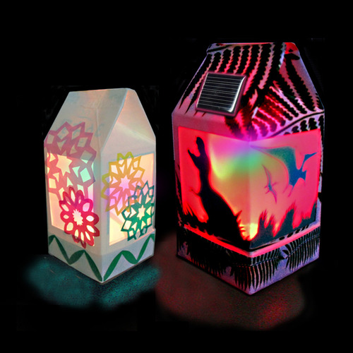 ランタンのボディーは牛乳パックなどをリサイクルして使います。